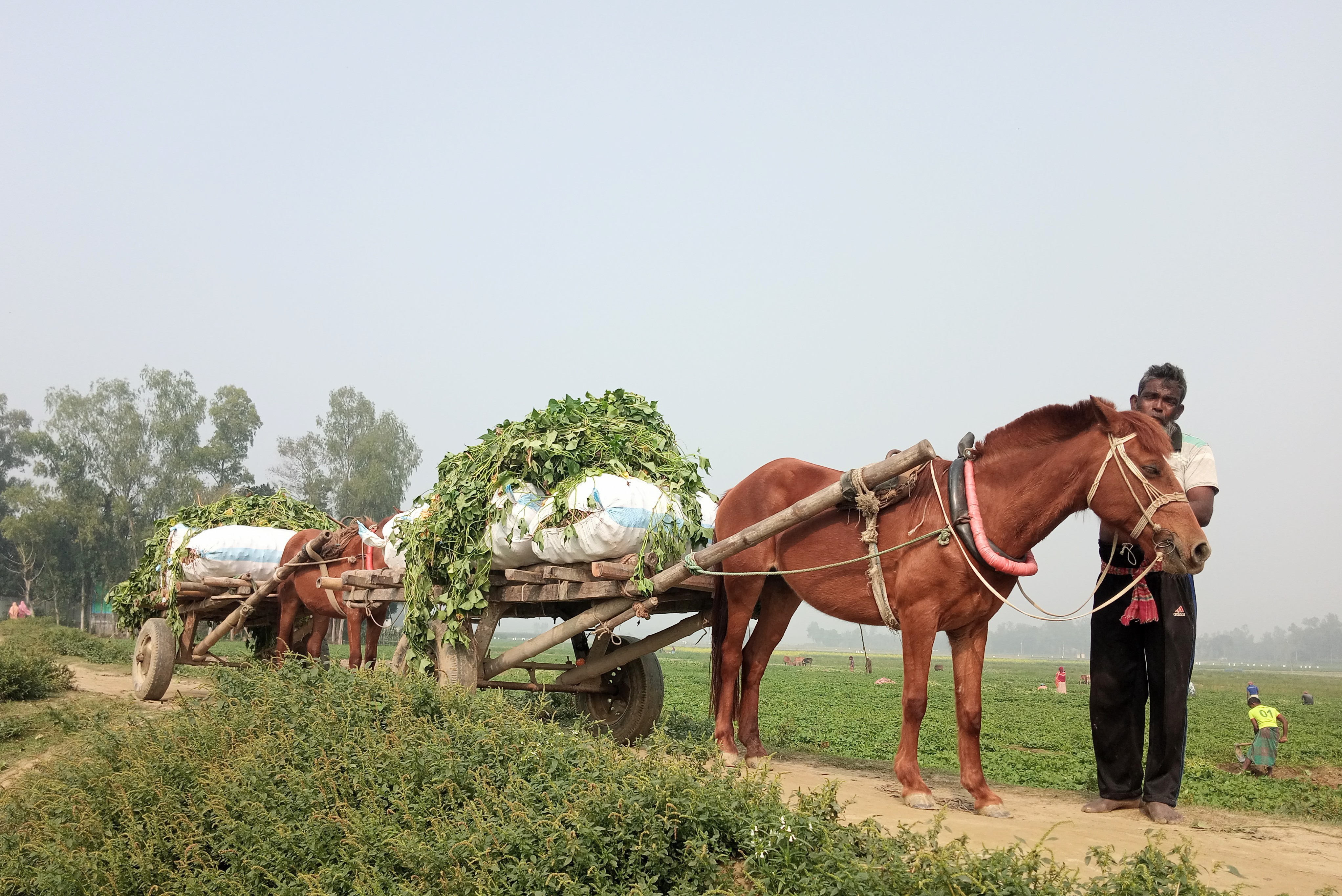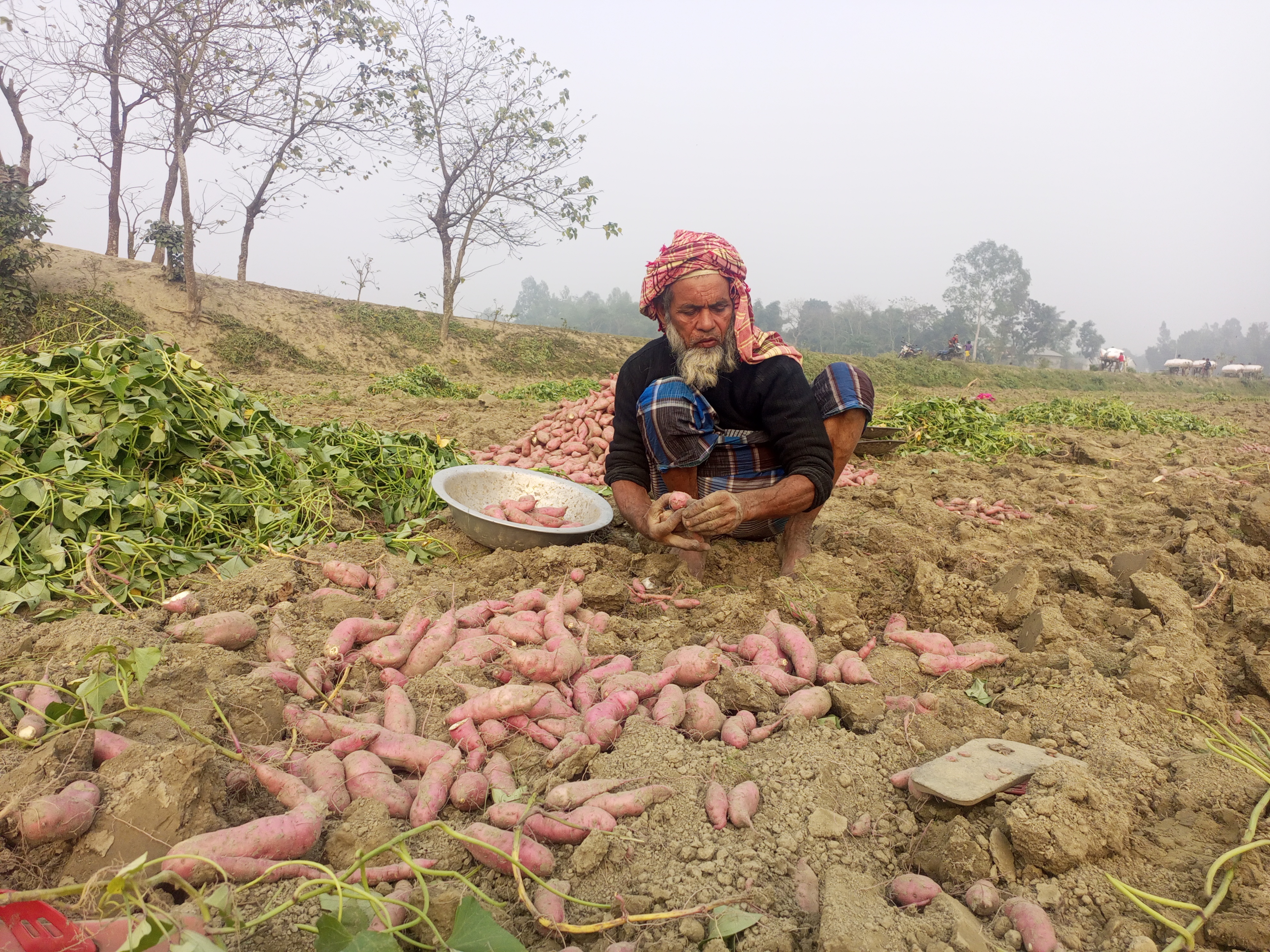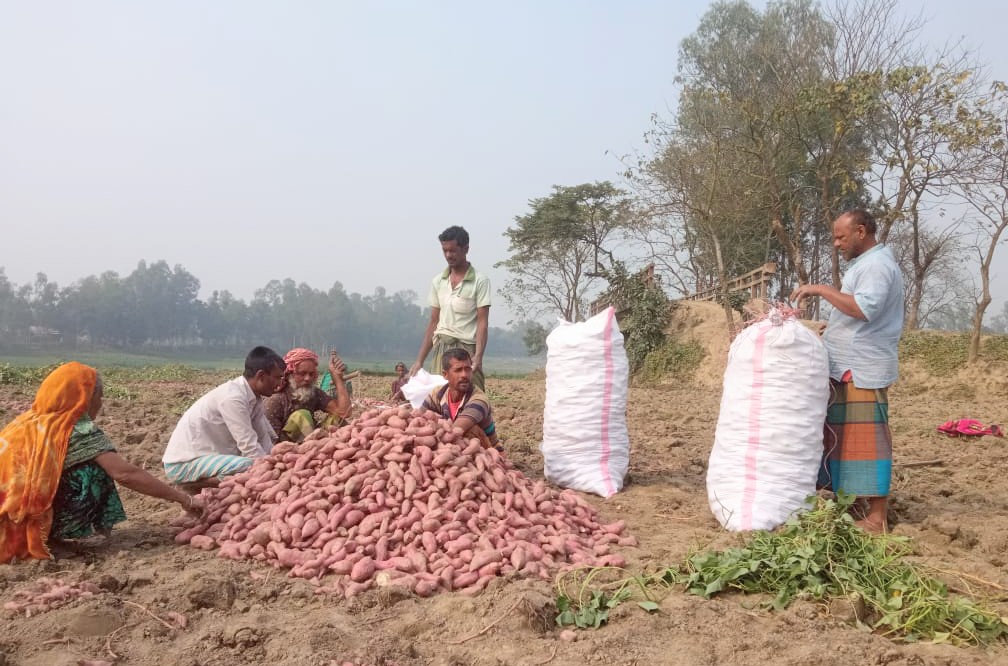 উপজেলার কামরাবাদ ও ভাটারা ইউনিয়নে গিয়ে দেখা যায়, বিস্তীর্ণ এলাকা জুড়ে মিষ্টি আলু সবুজ পাতায় ছেয়ে আছে ফসলের মাঠ। পুরুষেরা কোদাল দিয়ে মাটি কুপিয়ে আগলা করছে আর নারী ও শিশুরা আলু কুড়িয়ে এক জায়গায় স্তুপ করছে। দিনের শেষান্তে মিষ্টি আলু ক্ষেতে বসেই মেপে বস্তাবন্দি করছে কৃষকরা। কেউ আবার আলুর লতা গবাদি পশুর জন্য যত্ন করে ঘোড়ার গাড়ি করে নিয়ে যাচ্ছে বাড়ী। সব মিলিয়ে কৃষকদের এই অক্লান্ত পরিশ্রম যেন উৎসবে পরিণত হয়েছে।